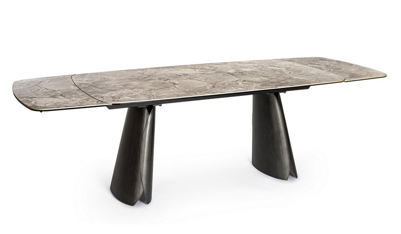 TISCH ALL.MAILIS 180/260X90 NUSS/GRAUDer ausziehbare Tisch "All.Mailis" von Bizzotto verbindet modernes Design mit praktischer Funktionalität. Seine Tischplatte besteht aus hochwertigem Feinsteinzeug mit edler Marmoroptik, was ihm eine luxuriöse Ausstrahlung verleiht. Der Ablagenträger besteht aus epoxy-pulverbeschichtetem Stahl, was für Stabilität und Langlebigkeit sorgt. Die Beine aus Nussbaumfurniertem MDF...