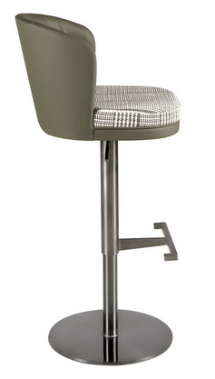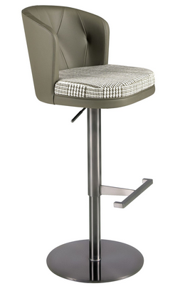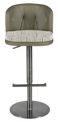 Getreu den neuesten Trends in der Dekoration ist die Originalität seiner Polsterung, die Stoff und Kunstleder kombiniert, ideal, um einen avantgardistischen und eleganten Touch in den Raum zu bringen. Die stabile Struktur und das Gestell aus dunkel poliertem Edelstahl sowie die integrierte Fußstütze garantieren Stabilität und Langlebigkeit und machen diesen Hocker zu einem Möbelstück, das Funktionalität, Komfort und Design vereint.