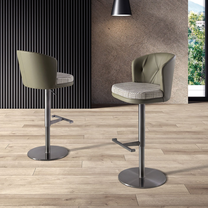 Sein vollständiger Drehmechanismus bietet eine sanfte und komfortable Beweglichkeit und sorgt für mehr Bewegungsfreiheit und Funktionalität im täglichen Gebrauch, ohne auf eine moderne und anspruchsvolle Ästhetik zu verzichten. Höhenverstellbar mittels Gasdruckdämpfer-Hebesystem, das eine präzise Anpassung der Sitzhöhe an verschiedene Höhen ermöglicht und so höheren Komfort, Vielseitigkeit und optimale Ergonomie gewährleistet.
