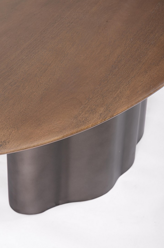 Dieser stilvolle Esstisch vereint massives Mangoholz mit einem modernen Untergestell aus verchromtem, pulverbeschichtetem Stahl – eine gelungene Kombination aus natürlicher Wärme und industriellem Chic. Die Tischplatte mit wasserbasierter Farbbehandlung bringt die einzigartige Maserung des Holzes zur Geltung und sorgt für ein robustes, langlebiges Finish.