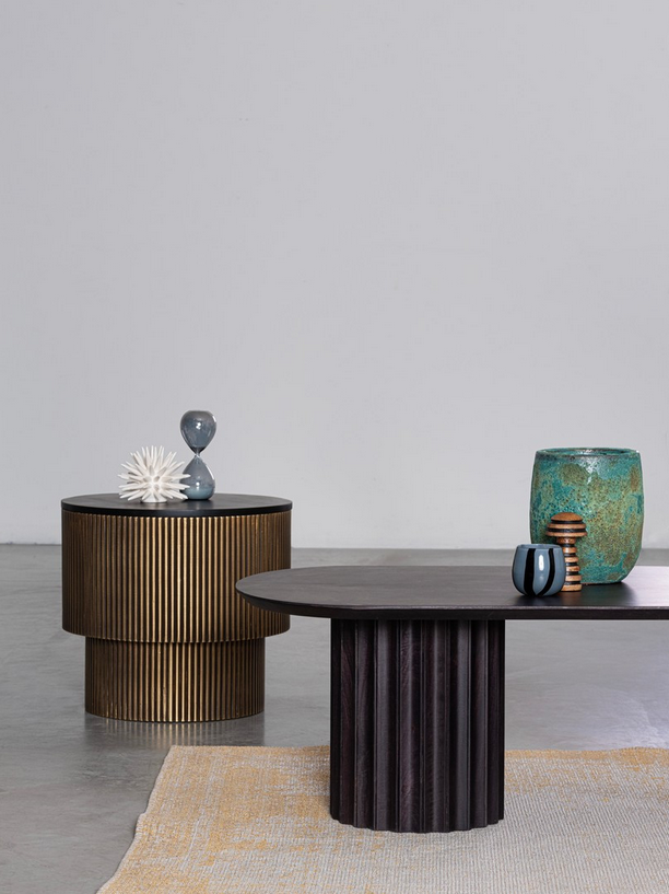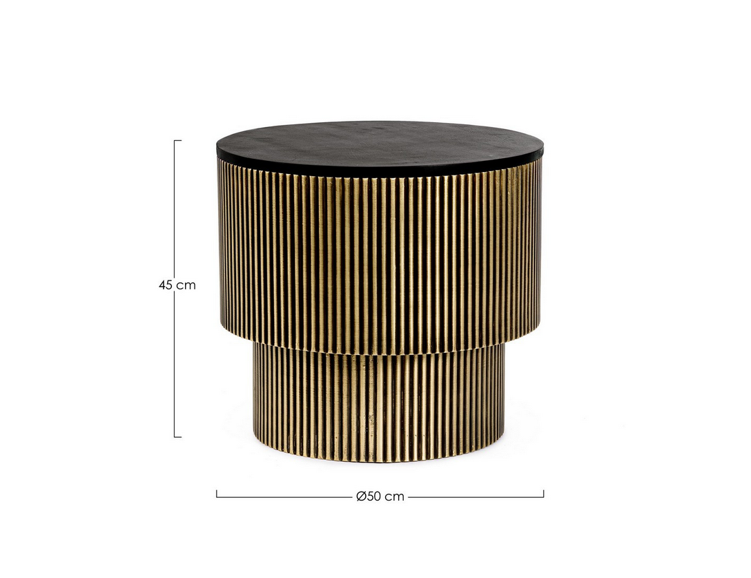Dank der kompakten Größe (Ø50 cm) eignet sich der Tisch perfekt als Beistelltisch neben dem Sofa, im Loungebereich oder auch im Schlafzimmer als stilvoller Nachttisch. Die Lackierung auf Nitrocellulosebasis sorgt für Schutz und Langlebigkeit.
