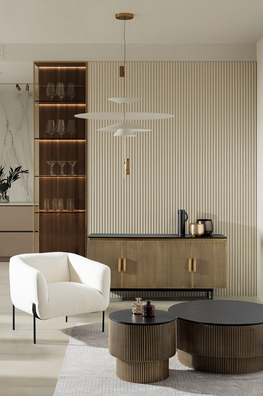 ✓ Warme Holztöne & Metall-Look