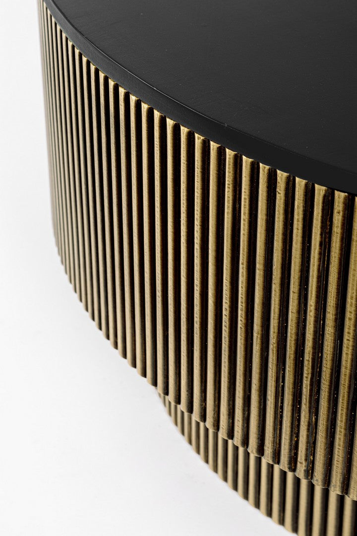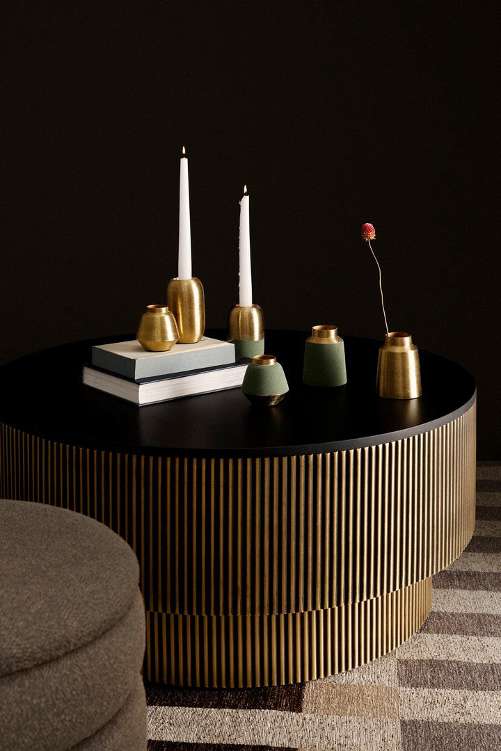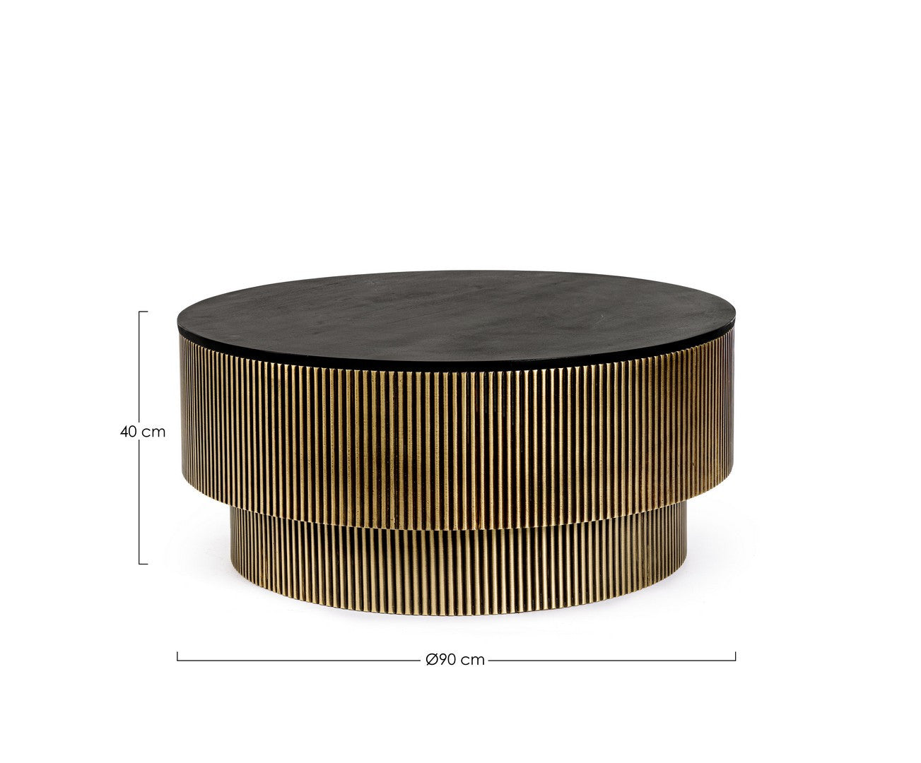 Dieser runde Sofatisch vereint edle Materialien mit einem Hauch von Vintage-Charme. Die Tischplatte aus massivem Mangoholz bietet eine natürliche Maserung und warme Ausstrahlung, während das Gestell aus MDF mit antiker Messingbeschichtung einen stilvollen Akzent setzt. Die Kombination aus Holz und metallischem Glanz verleiht jedem Raum eine elegante und zugleich gemütliche Atmosphäre.