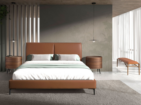 Die Kombination des Kunstlederbezugs mit dem nussbaumfarbenen Holz der Beine ist perfekt, um Wärme und Eleganz in jeden Raum zu bringen. Das robuste Holzgestell mit nussbaumfarbenen Beinen passt ideal in jedes Schlafzimmer oder Ankleidezimmer – nicht nur als dekoratives Element, sondern auch als voll funktionsfähiges und vielseitiges Stück für den täglichen Gebrauch.