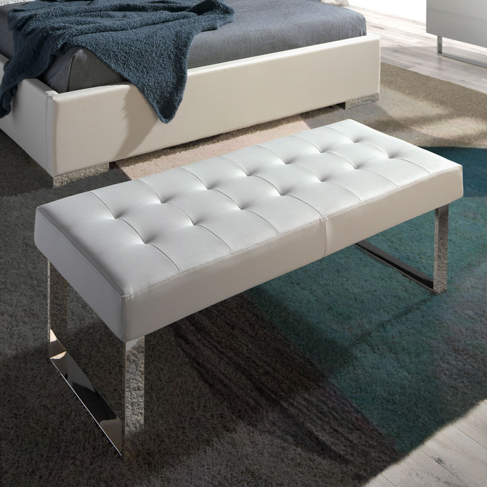 Erleben Sie luxuriöses Sitzen mit unserer exklusiven Öko-Lederbank in elegantem Weiß. Diese hochwertige Sitzbank vereint modernes Design mit außergewöhnlichem Komfort und wird zum stilvollen Blickfang in Ihrem Schlafzimmer, Flur oder Wohnbereich.